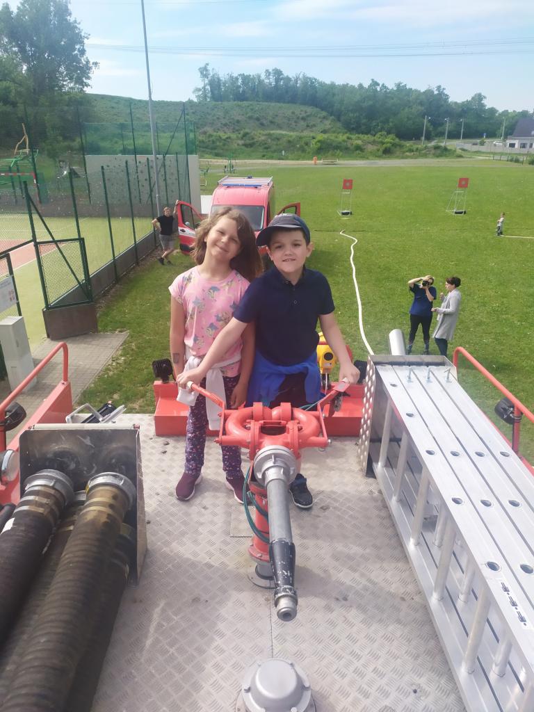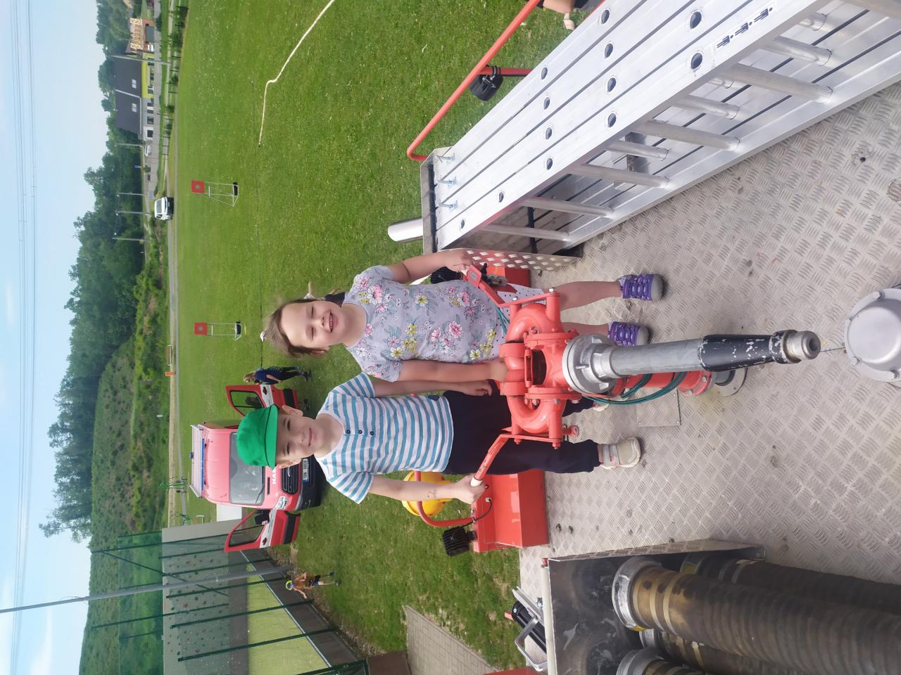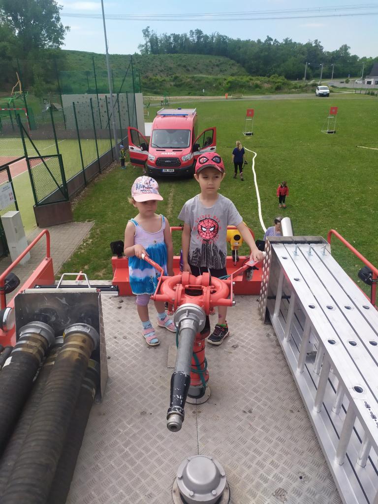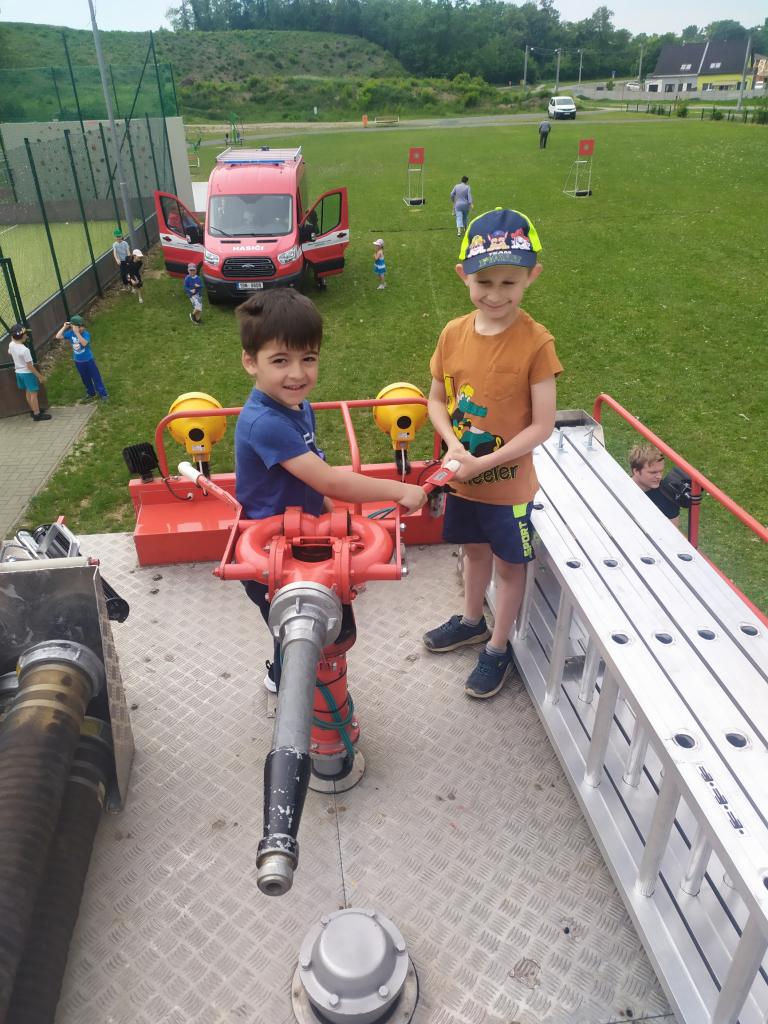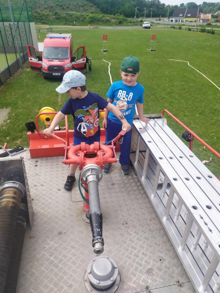 děti ze školky program, během kterého si vyzkoušely záchranu plyšáka, hasit oheň a stříkat na terč. Dále si prohlédly hasičská auta a jejich vybavení..